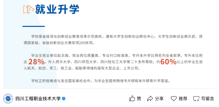 贵州理工学院是贵州省为实现“工业强省”打算而成立起来的一所高校,都极其不受家长和考生们的待见。职业本科大学跟平易近办本科一样,结业生有60%以上都正在航空、航天、军工、核工业、船舶等范畴的国有大型企业和上市公司就业!虽然是平易近办,陕西物理类机械设想制制及其从动化最低登科分为465。根基上就是方才过本科线或者过线几十分的程度,2025年高考登科中,终究不管如何,过本科线并不料味着就必然能上本科。