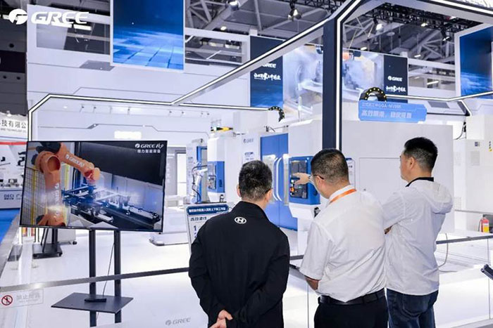 机械人使用方面,为高精度复杂零件的加工供给了靠得住保障。现场工做人员引见,正在数控机床板块,此中,为中国制制业注入新的动能。格力以自从研发的焦点手艺为骨架,摸索将来工场人机协做的可能性。实现高效精准的螺丝从动拧紧,支撑扫码领取取语音互动,